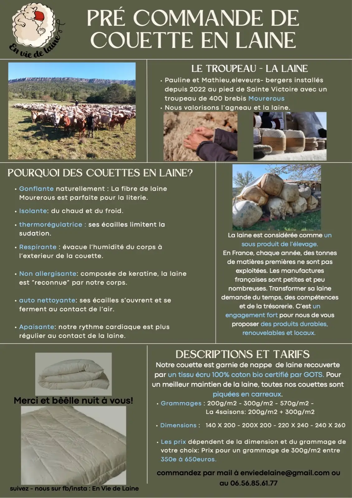 Pauline et Mathieu vous proposent aussi, sur commande préalable pour décembre, une fabrication de couette en laine et coton bio GOTS